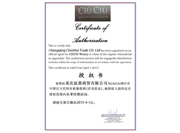 根據(jù)不同進(jìn)貨額度,總部每年給予返利和返點(diǎn)支持,銷(xiāo)售越高,獲利越多2015年11月14日,意大利CIU'CIU'有機(jī)葡萄酒品鑒會(huì)暨重慶市宸惠(酒業(yè))商貿(mào)有限公司招商說(shuō)明會(huì)在重慶維景大酒店成功舉辦!在此宸惠酒業(yè)全體員工感謝自意大利遠(yuǎn)道而來(lái)的CIU’CIU’(楚楚)有機(jī)酒莊莊主及工作人員親臨現(xiàn)場(chǎng);感謝重慶MBA葡萄酒協(xié)會(huì)會(huì)長(zhǎng)(法國(guó)波爾多騎士、法國(guó)波爾多盲品挑戰(zhàn)賽中國(guó)站冠軍、WEST高級(jí)品酒師)的專(zhuān)業(yè)品鑒與點(diǎn)評(píng);感謝廣東商會(huì)、四川商會(huì)...